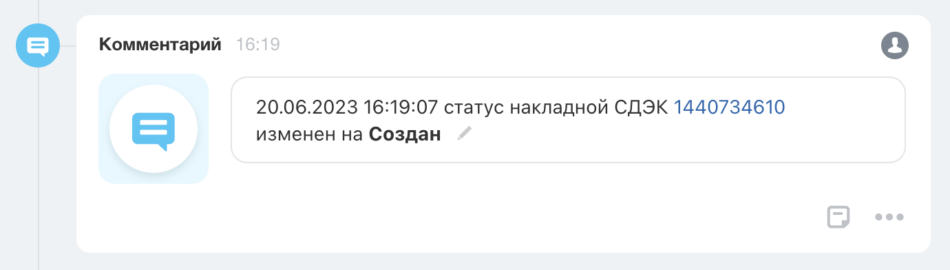 Опция позволяет добавлять в живую ленту информацию о смене статуса СДЭК.