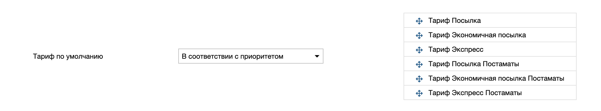 - В соответствии с приоритетом. Пользователю предлагается расставить включенные тарифы в порядке приоритета (сверху - самый приоритетный). Приложение будет использовать список приоритета и оформит накладную по первому (считая сверху) доступному тарифу .