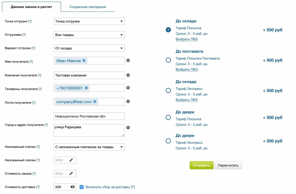 Стоит учитывать, что СДЭК не разрешает создавать заказы с одним и тем же номером (т.е. номер должен быть уникален). Поэтому при создании второй накладной по заказу приложение автоматически добавляет к номеру дату и время создания.