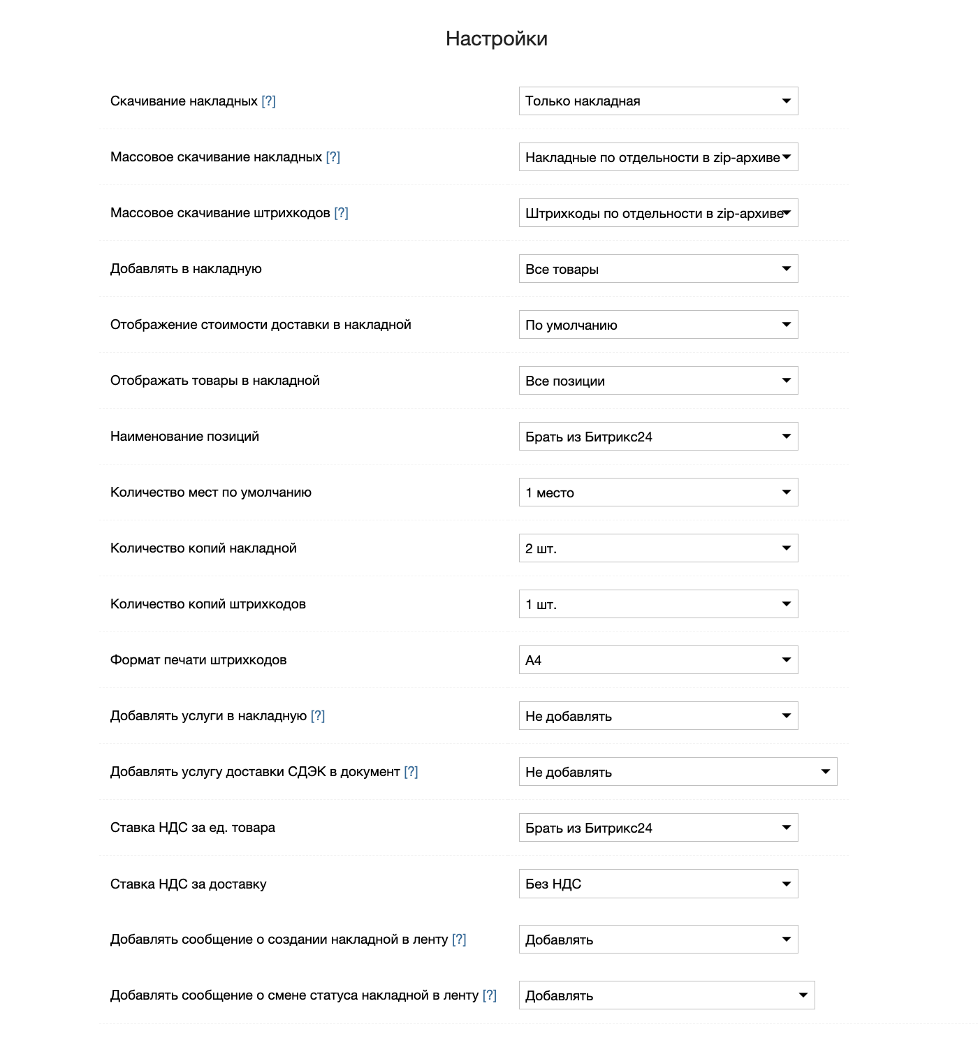 Если в Битрикс24 у вас задана ставка НДС для каждой позиции - вы можете включить опцию "Брать из Битрикс24", в этом случае в накладную будут транслироваться данные из Битрикс24.