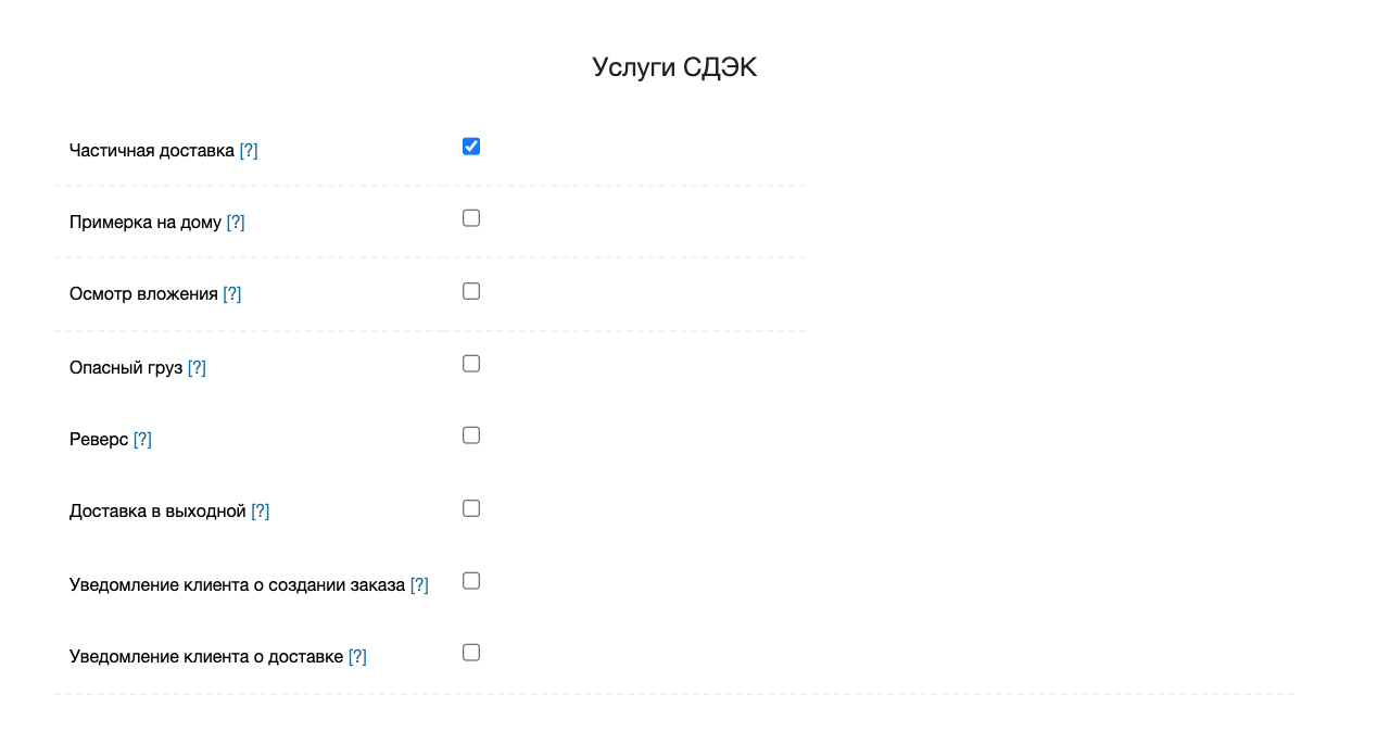 Услуги СДЭК, которые будут учитываться при создании накладной.