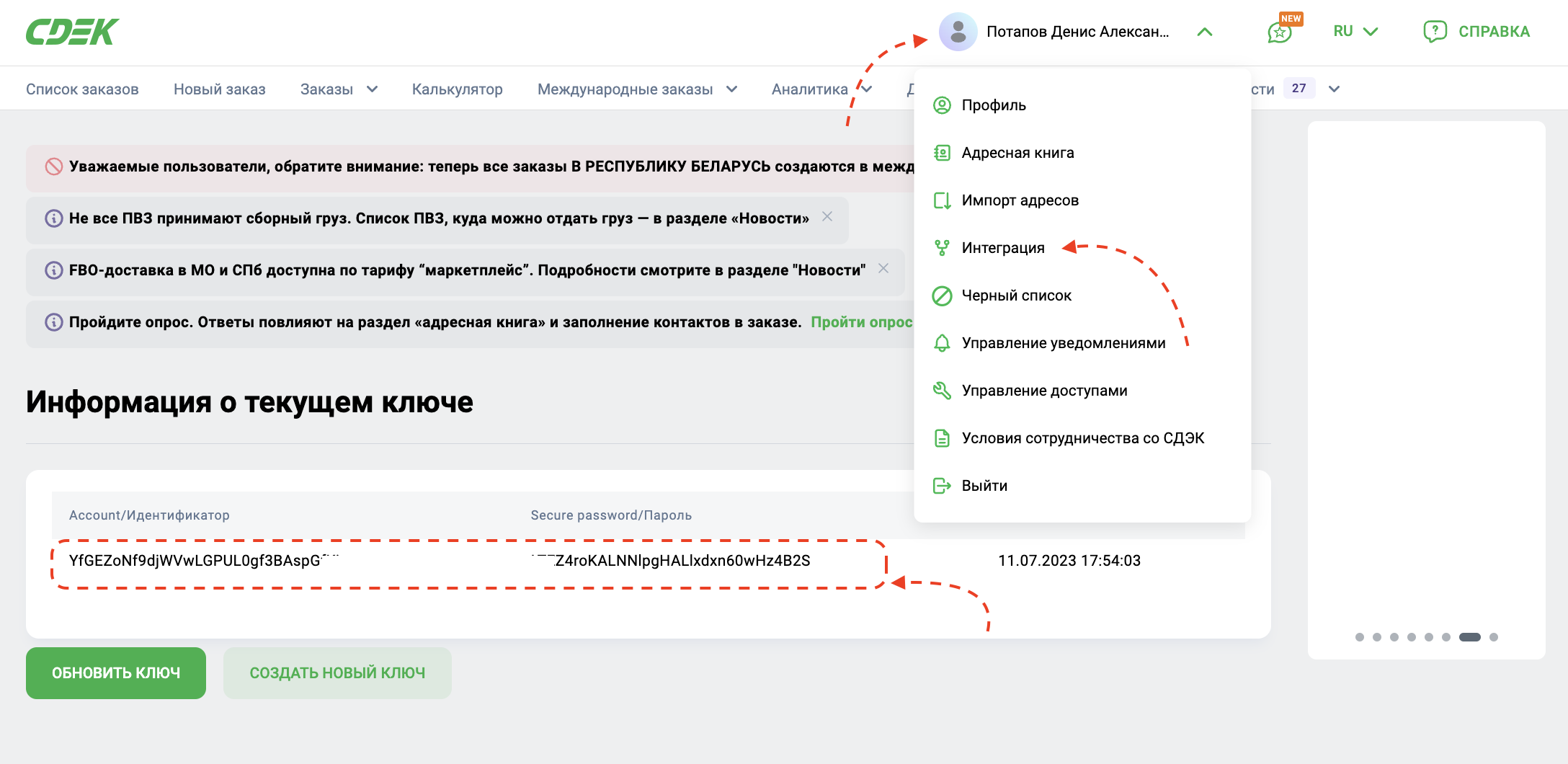 При запросе, важно указать, что вам нужны "боевые" ключи API СДЭК.